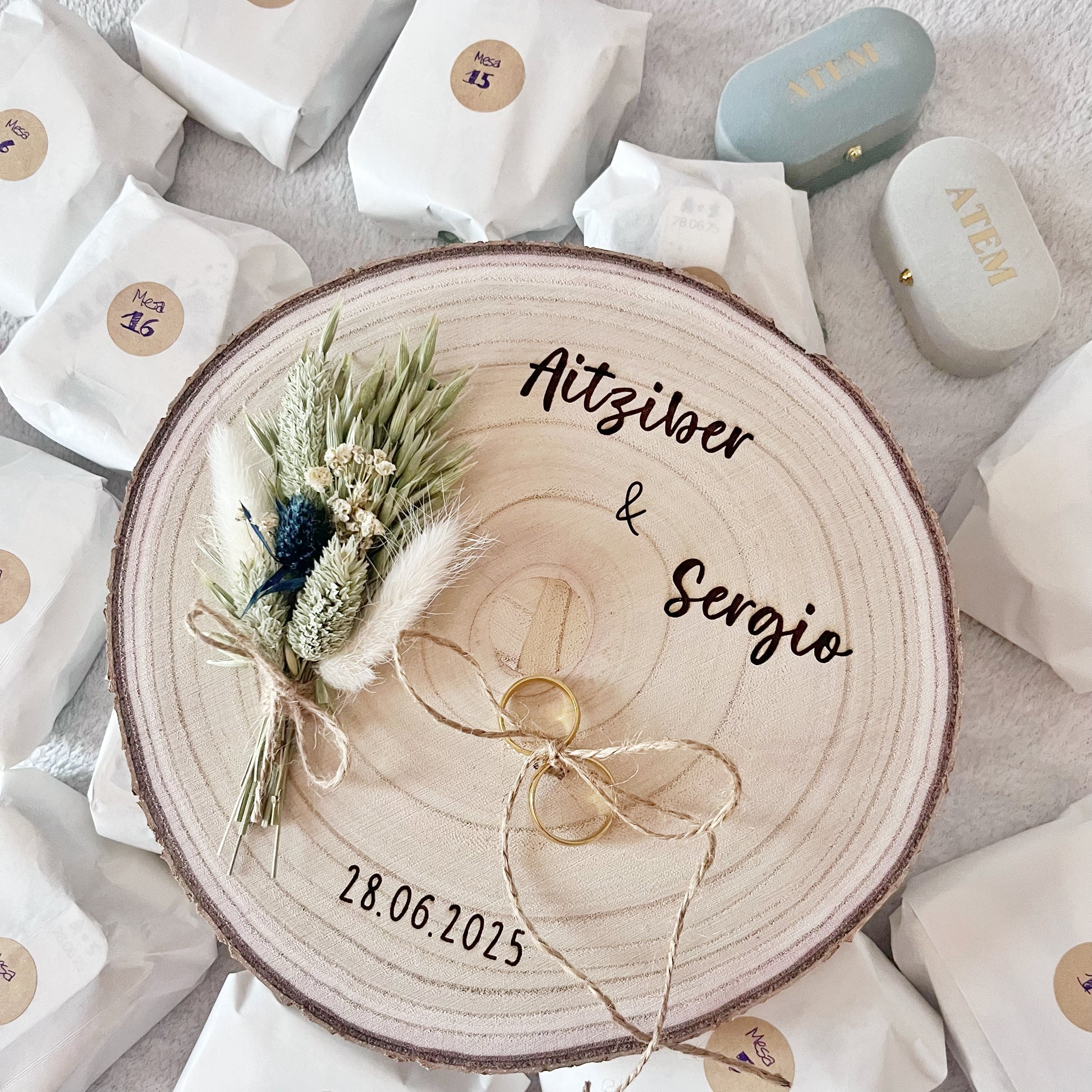 Es perfecto para quienes buscan un toque rústico, elegante y totalmente personal. Un detalle sencillo, pero con mucho significado, que hará vuestro momento aún más especial 💜