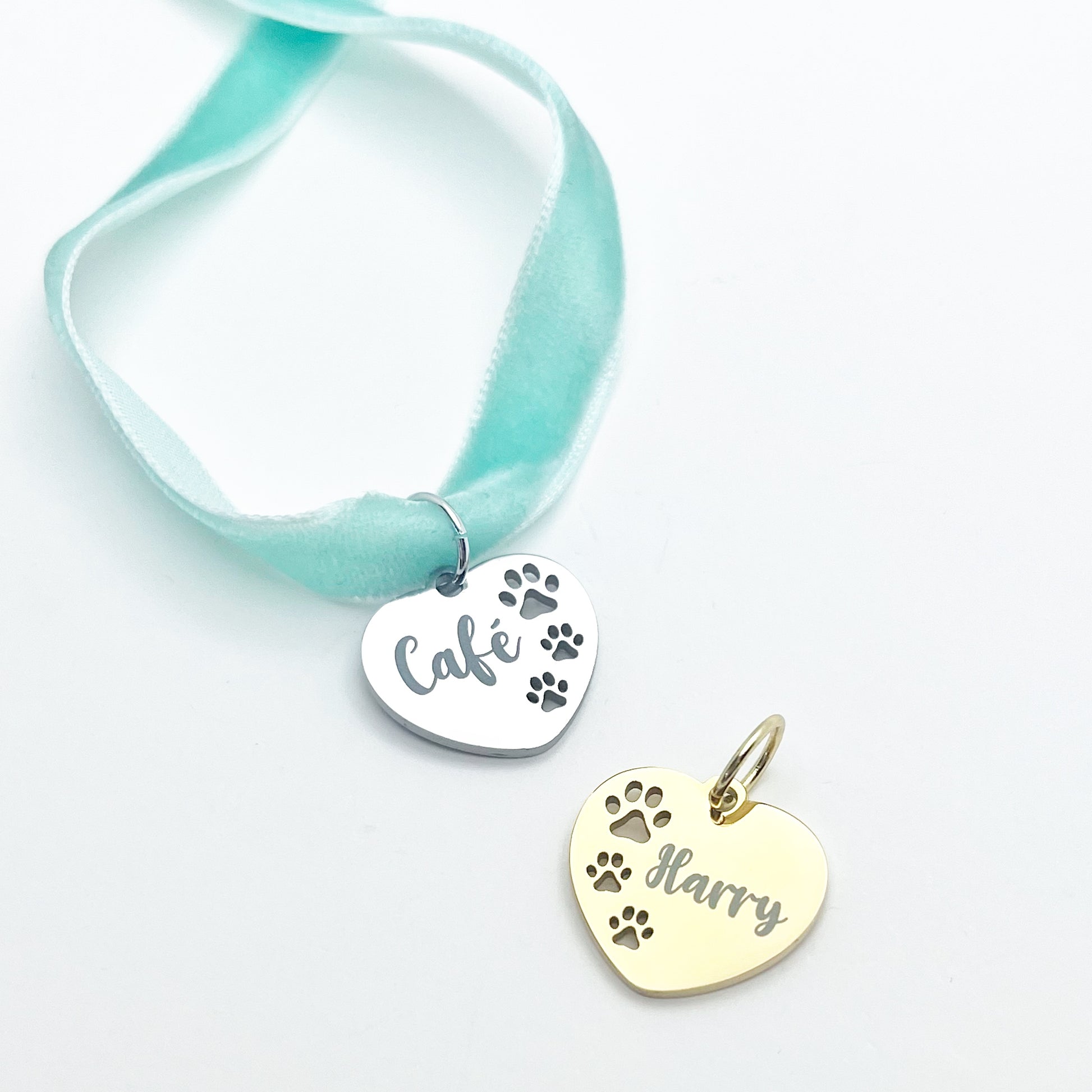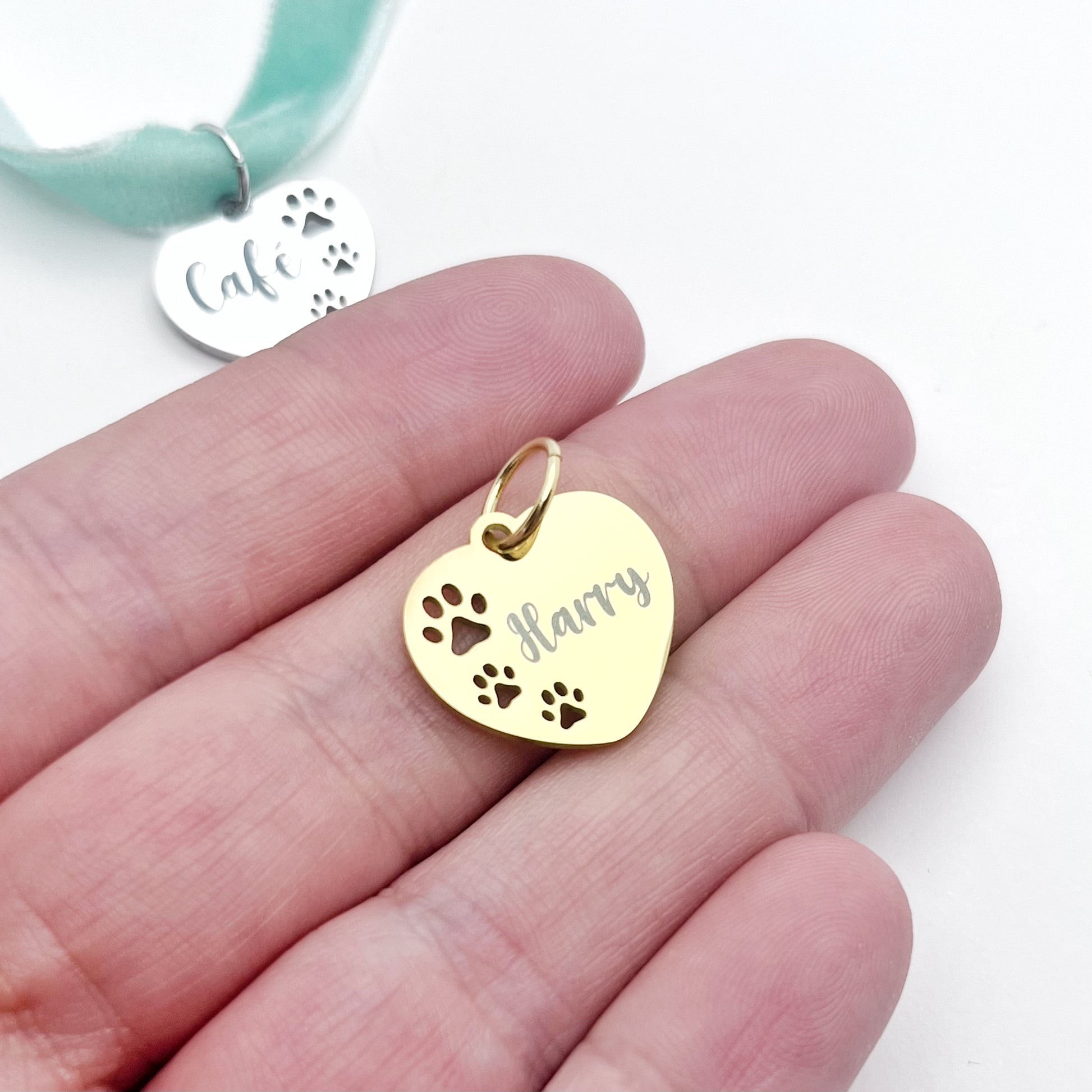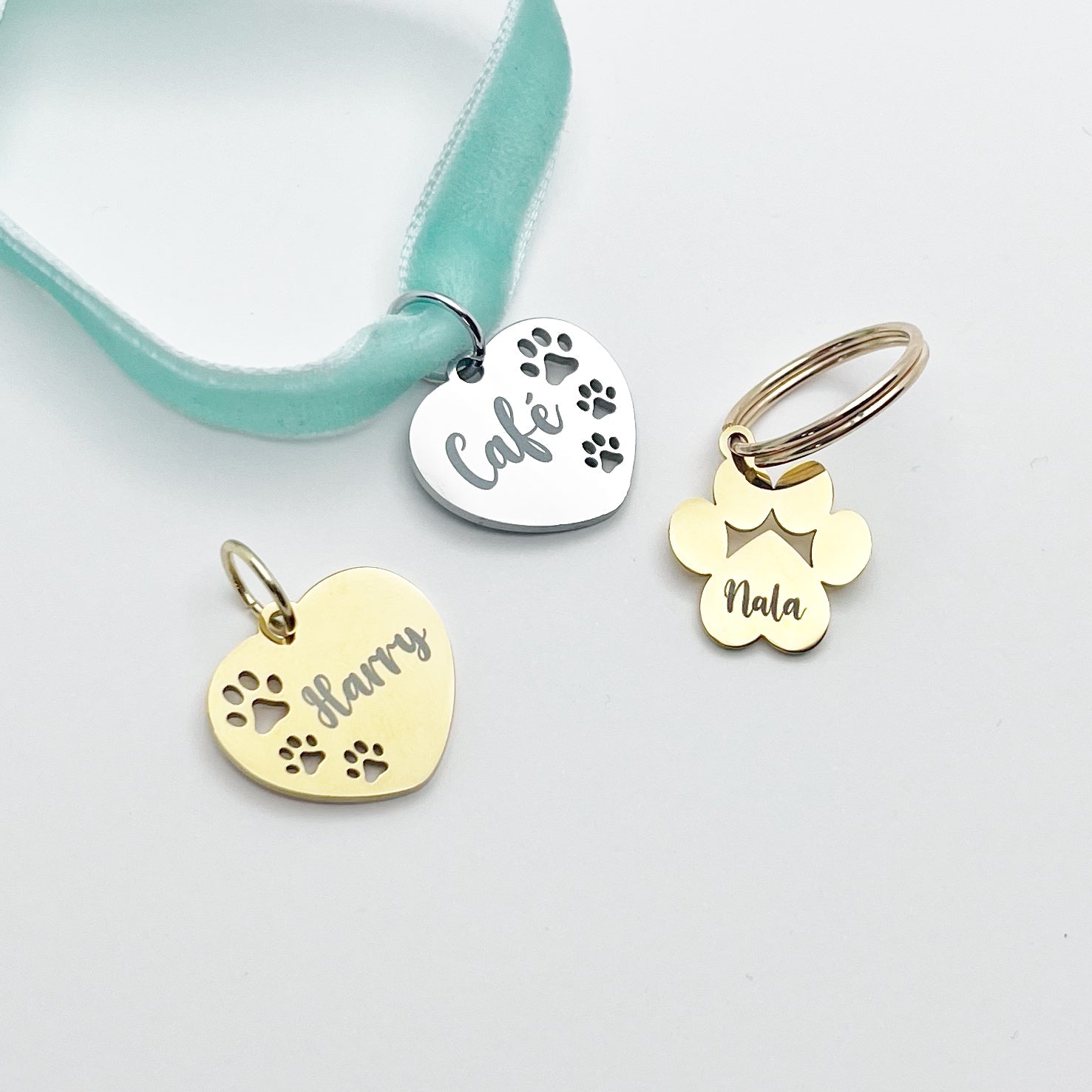 Este mini tag en forma de huella o corazoncito es ideal para gatitos y otras mascotas pequeñitas.