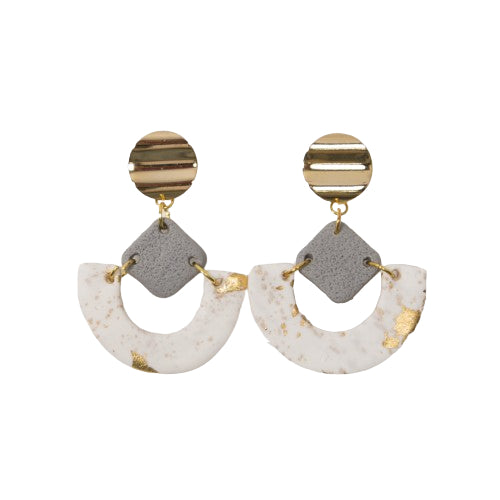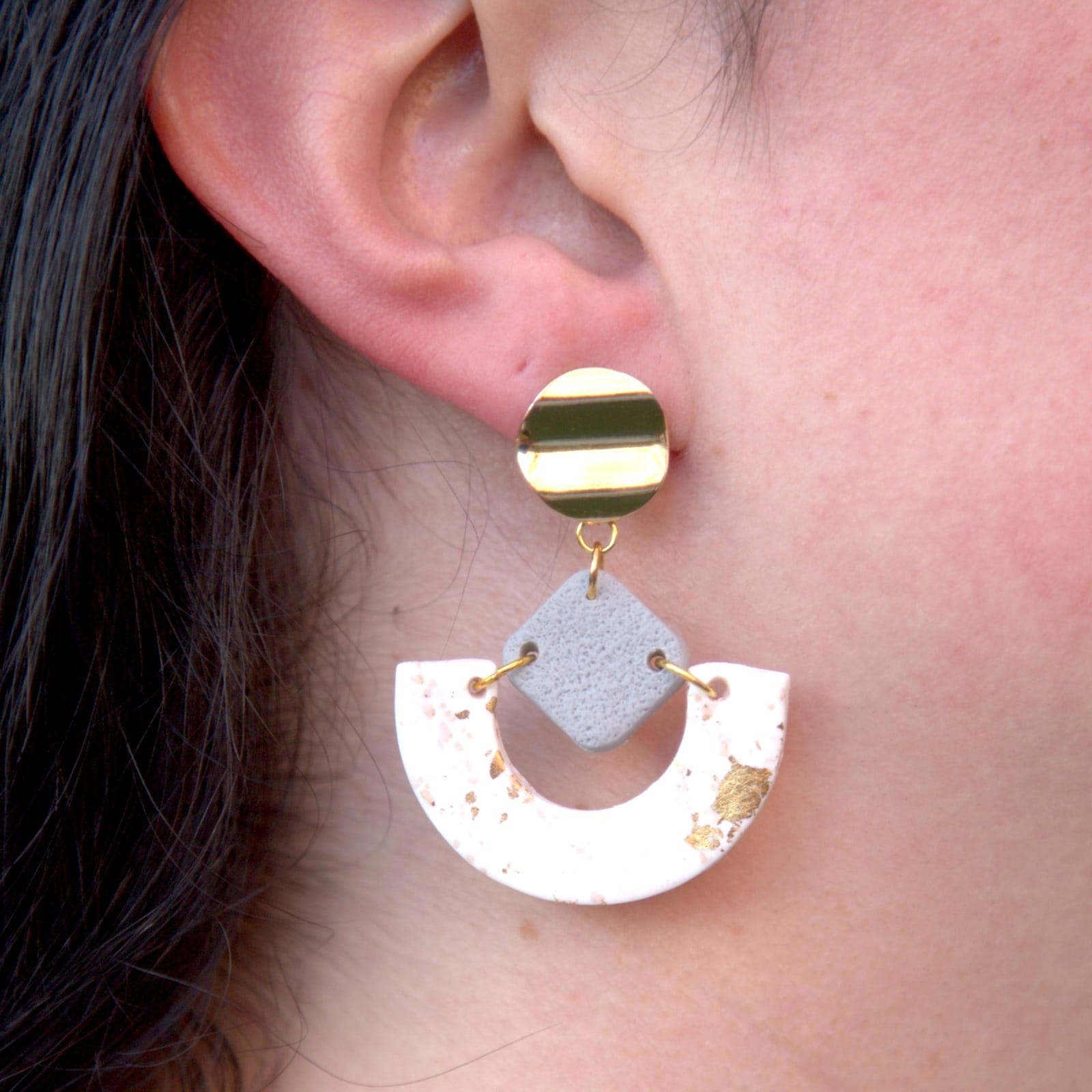 Cierre de latón bañado en oro 18k, anillas y chapa de latón, piezas de arcilla polimérica.