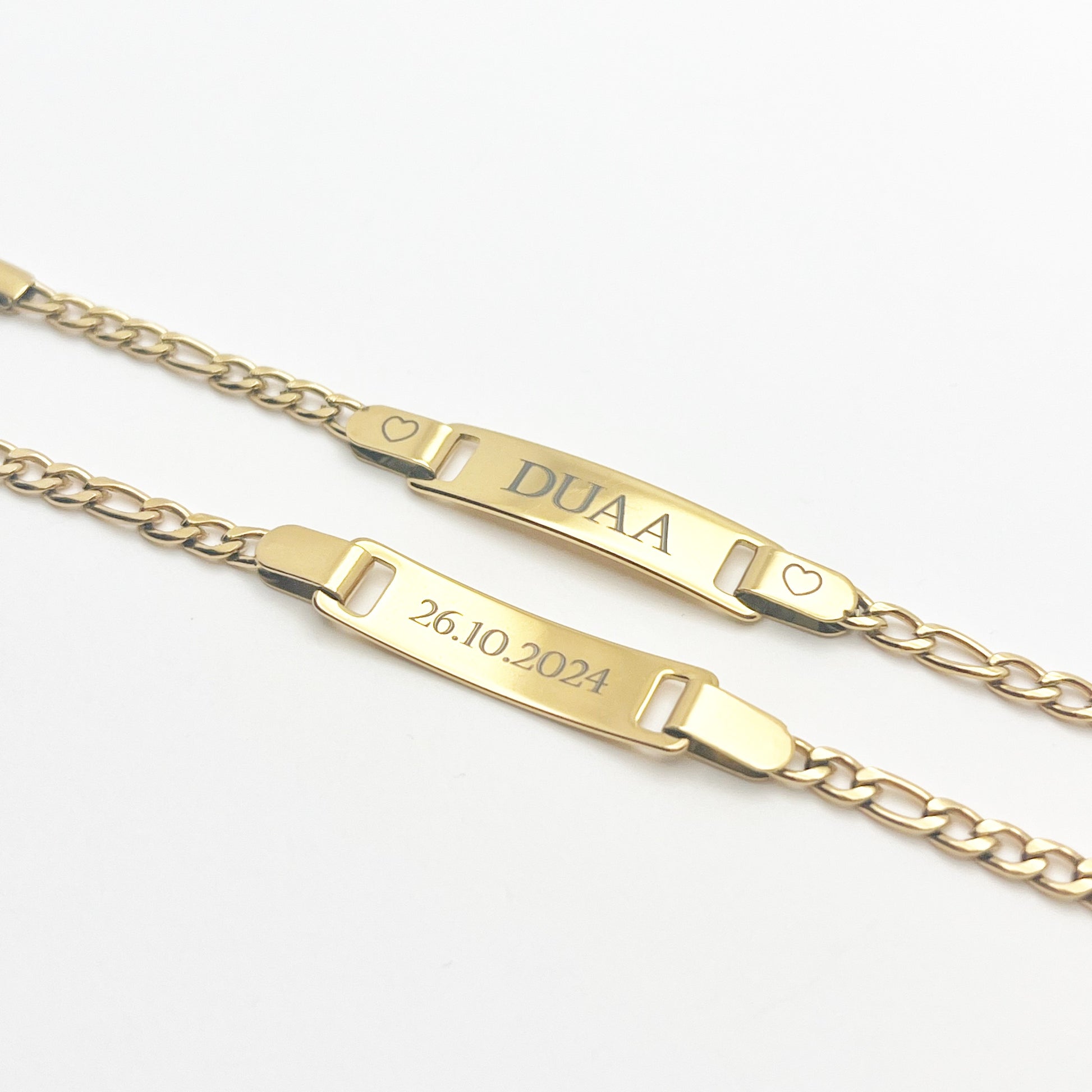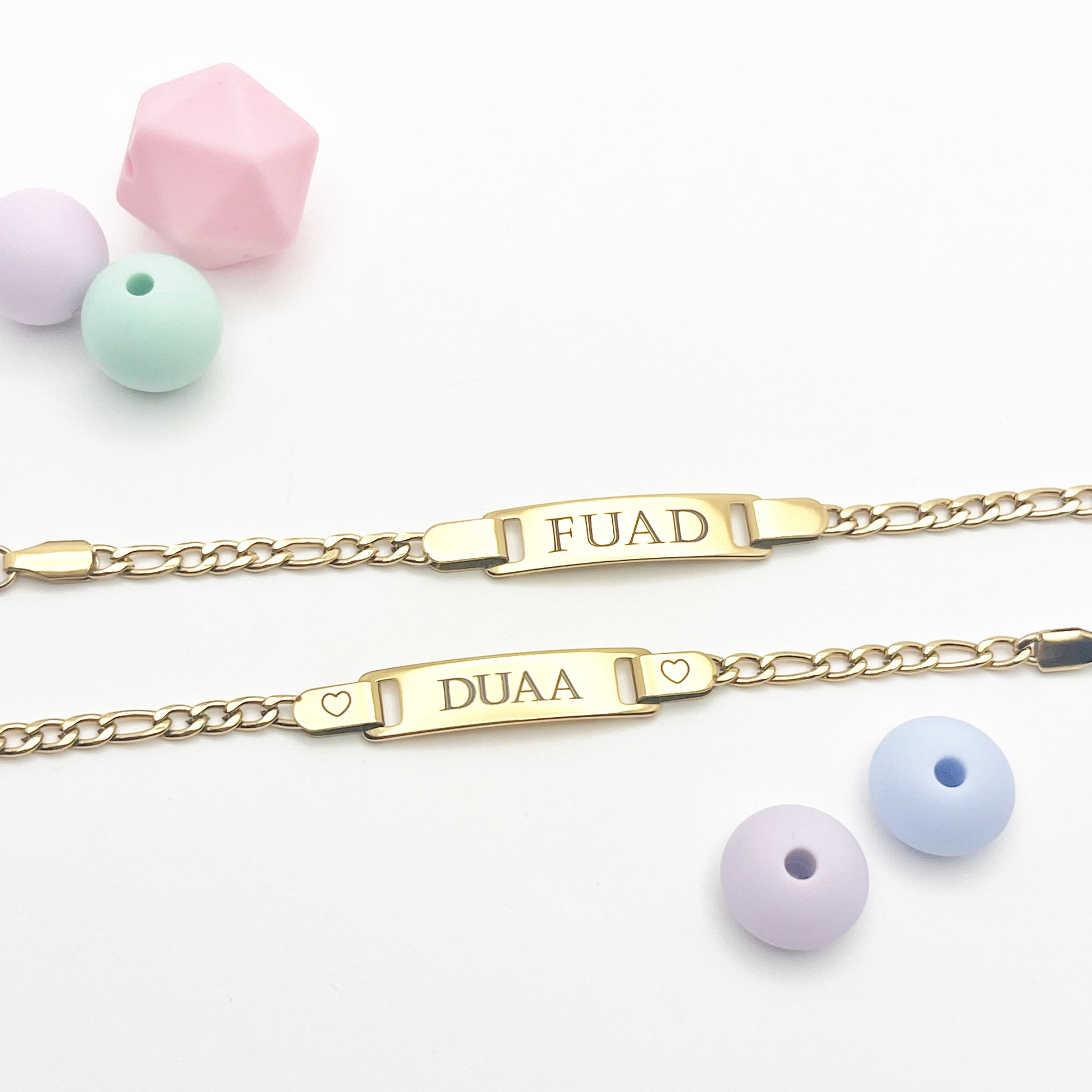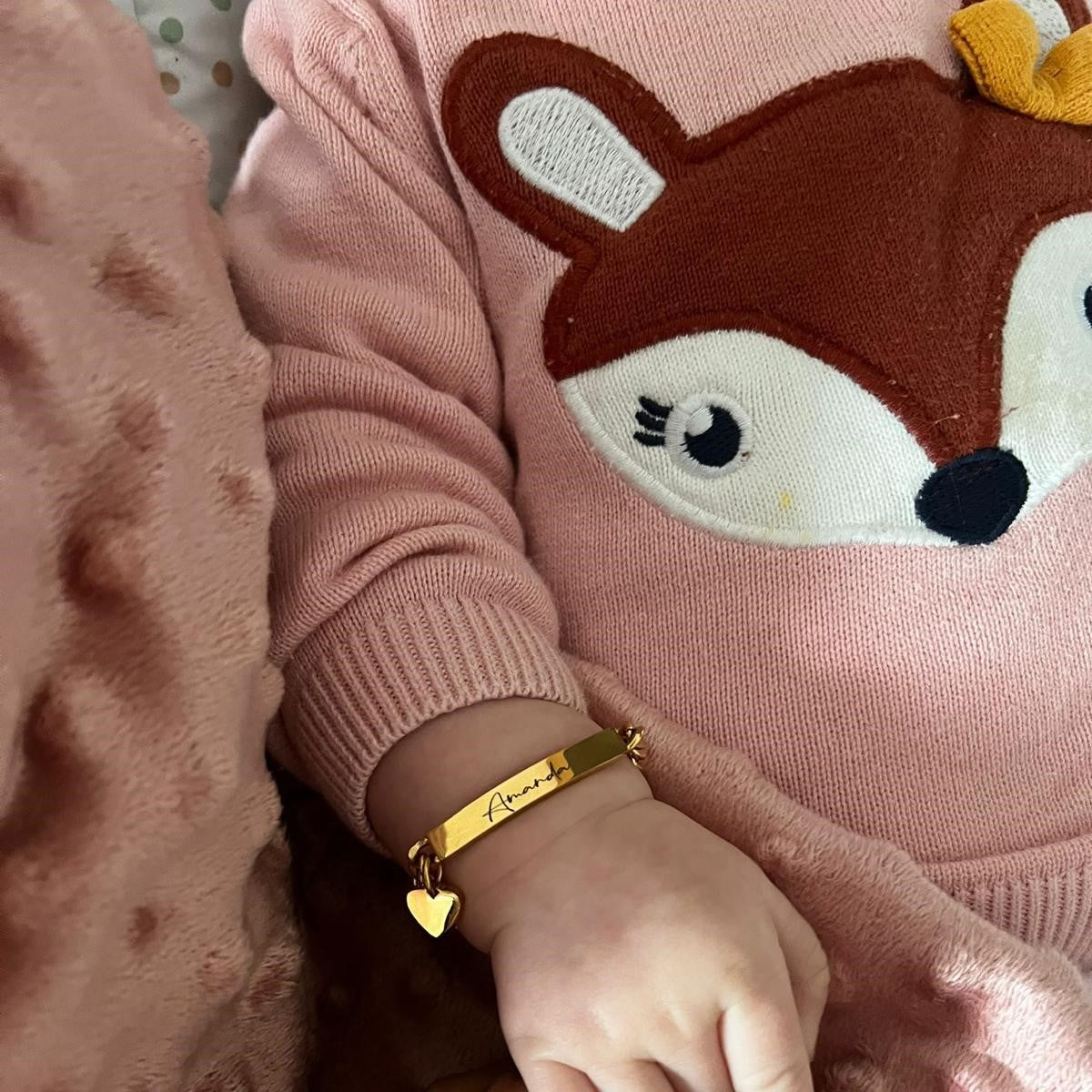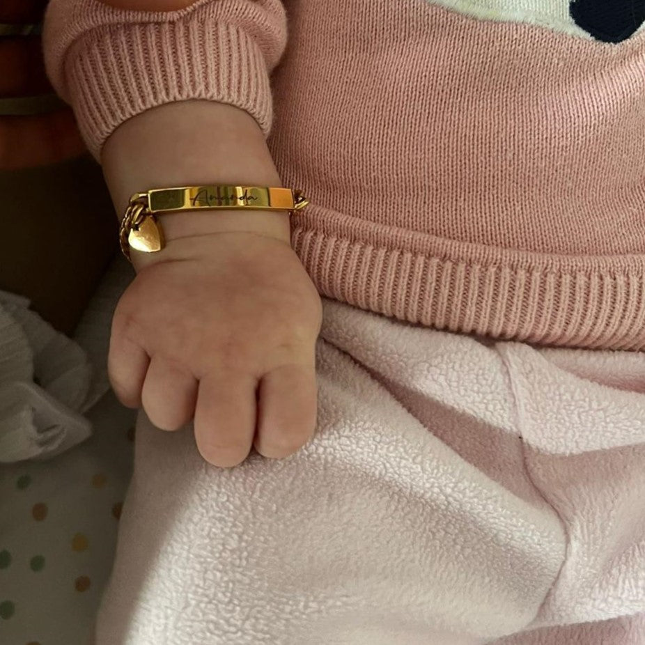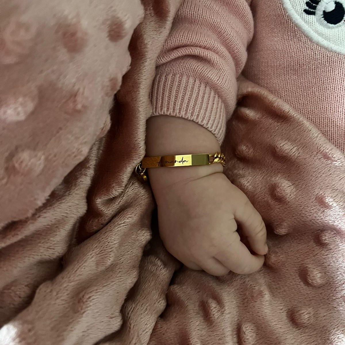 La primera joya de tu bebé. Esta esclava, dorada o plateada y disponible en varios modelos, es el detalle perfecto para marcar los primeros recuerdos. Personalízala con el nombre, fecha o un mensaje especial grabado con láser para un acabado único.