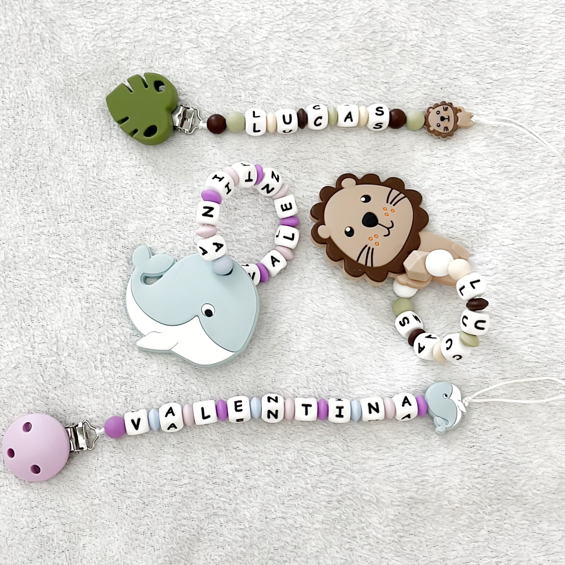 Los chupeteros, mordedores y collares de lactancia están fabricados con silicona libre de BPA, garantizando seguridad y bienestar.