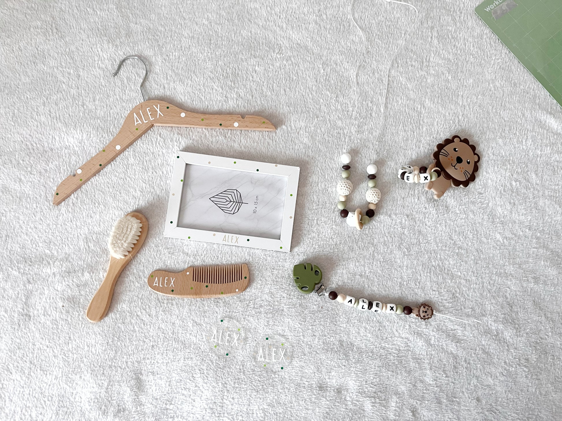 Este pack personalizado incluye una selección de productos esenciales para acompañar al bebé en sus primeros momentos. Cada set se crea a medida, eligiendo los detalles que más te gusten para hacerlo único y especial.