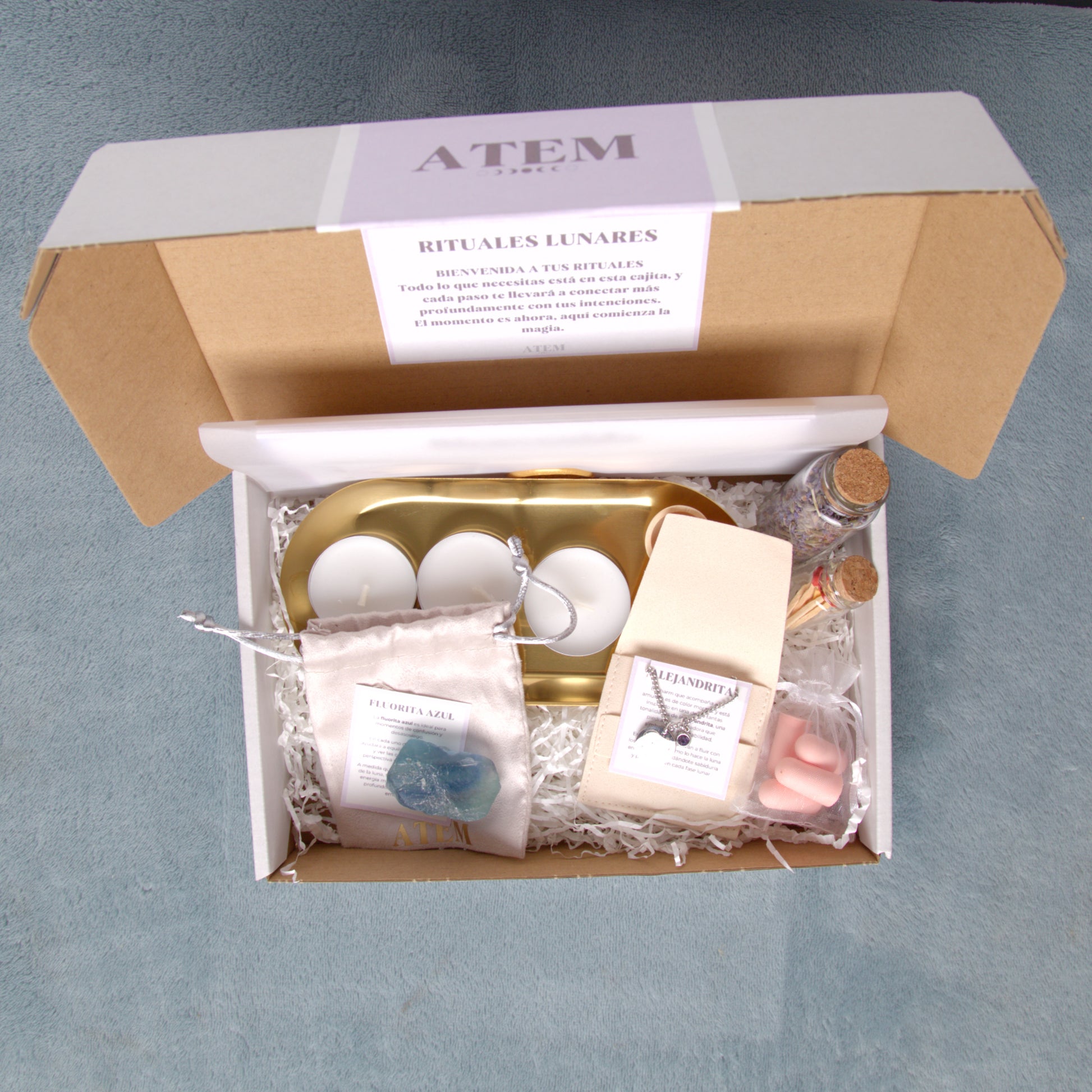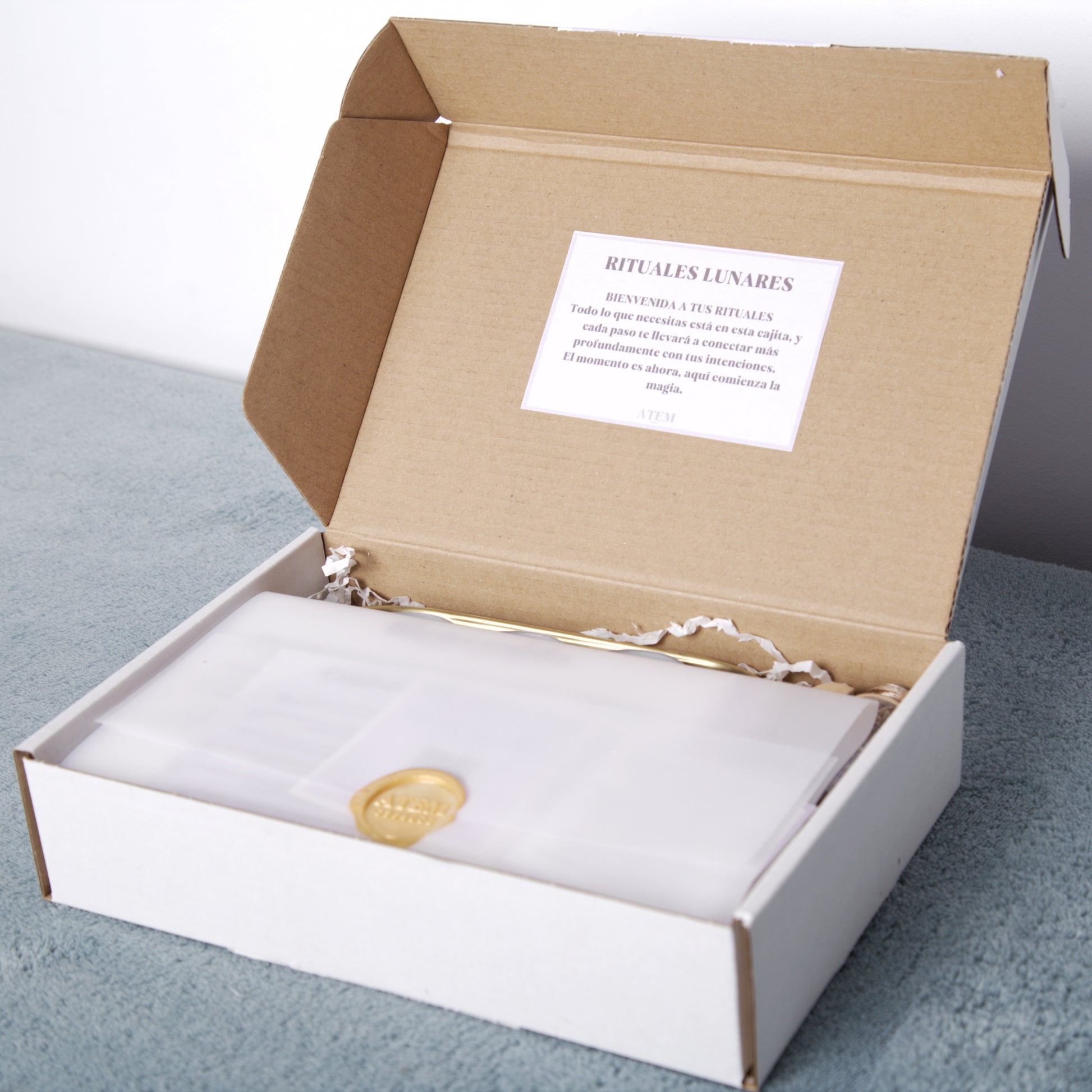 - Un sobre con las instrucciones detalladas para cada fase: Luna Nueva, Cuarto Creciente, Luna Llena y Cuarto Menguante.