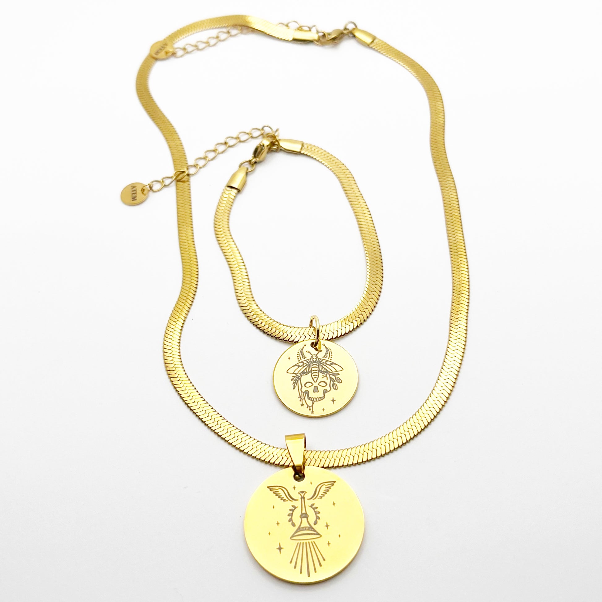 Una combinación de collar y pulsera pensada para conectar con tu intuición y llevar siempre contigo un amuleto con mucha fuerza.