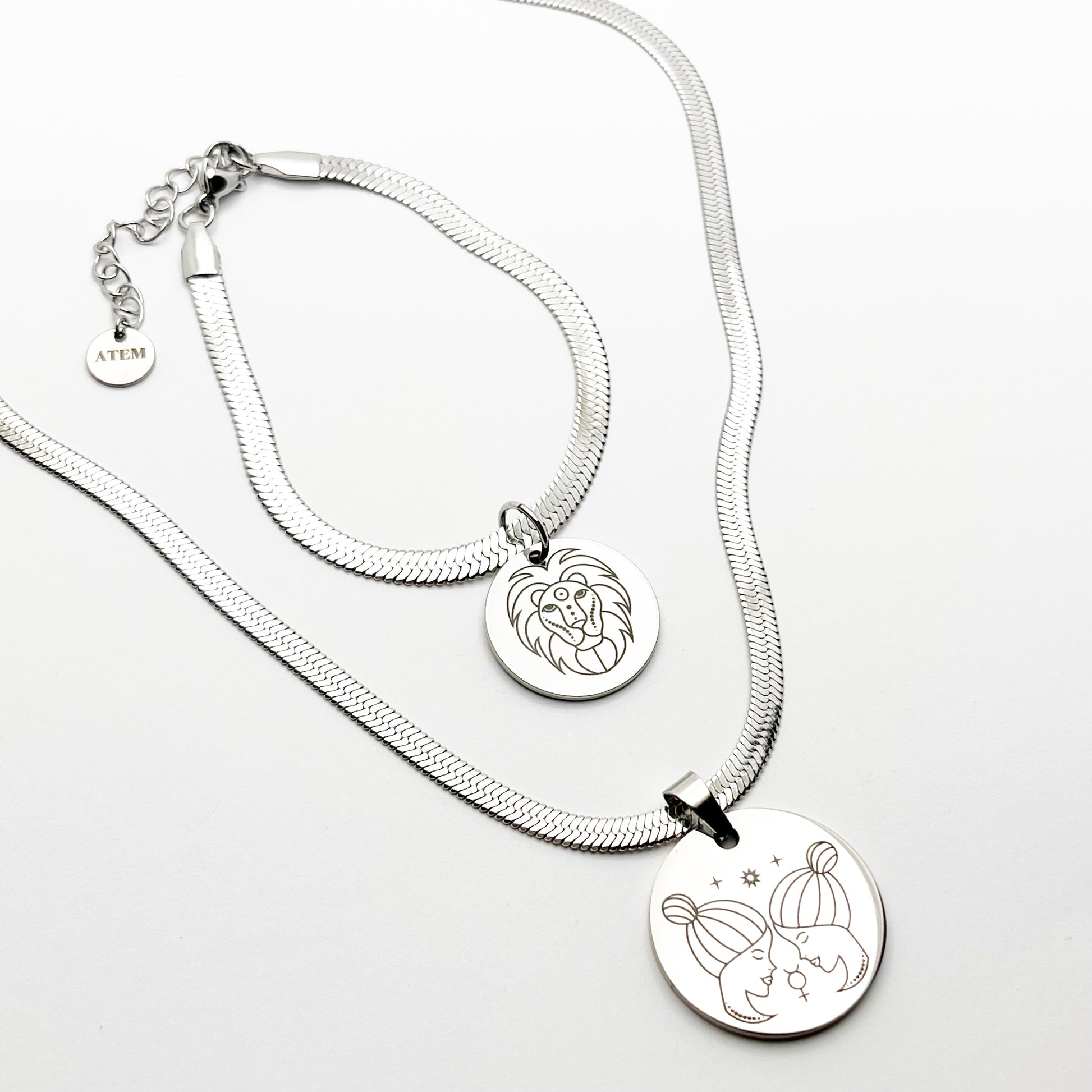 Incluye collar + pulsera, con la medalla grabada con el símbolo de tu signo en la parte delantera. Por detrás lleva el nombre y el símbolo astrológico de tu signo, para que vibres con tu energía cada vez que te lo pongas 💫